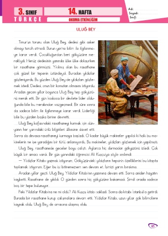 gözleniyordu. Bu yüzden Uluğ Bey de yıldızları gözle-