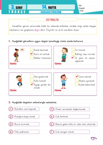 1. Aşağıdaki görsellere uygun deyimi işaretleyip cümle içinde kullanınız.