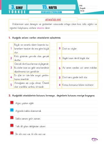 3. SINIF 15. HAFTA Adı: ............................................