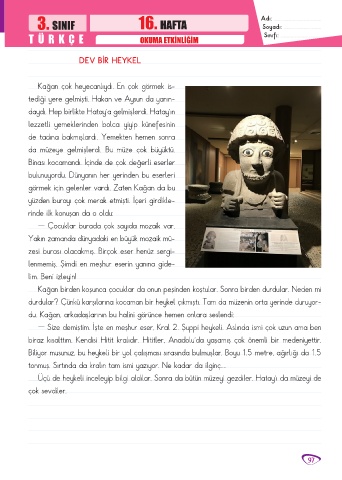 3. SINIF 16. HAFTA Adı: ............................................