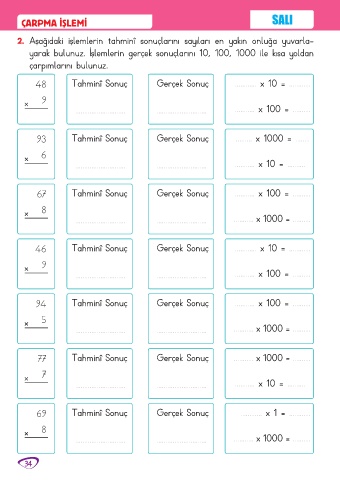 48 Tahminî Sonuç Gerçek Sonuç ............ x 10 = ............