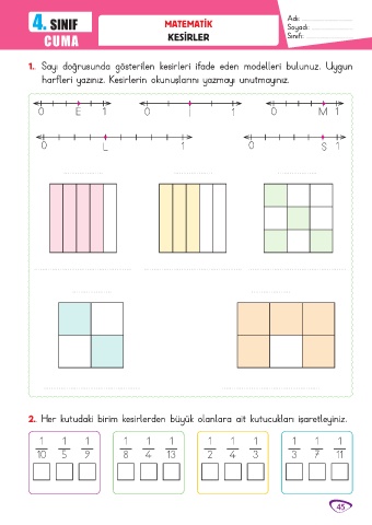 2.. Her kutudaki birim kesirlerden büyük olanlara ait kutucukları işaretleyiniz.