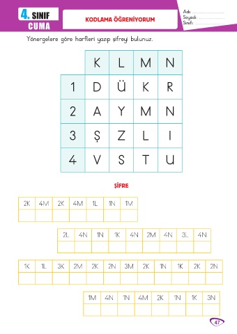 Yönergelere göre harfleri yazıp şifreyi bulunuz.
