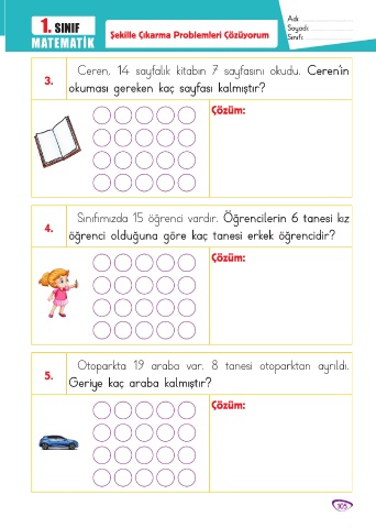 MATEMATİK Şekille Çıkarma Problemleri Çözüyorum Sınıfı: ........................................