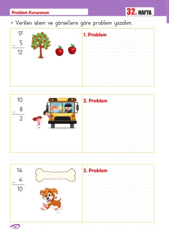 Problem Kuruyorum 32. HAFTA • Verilen işlem ve görsellere göre problem yazalım. 17 1. Problem 5 12 10 2. Problem 8 2 14 3. Problem 4 10 110