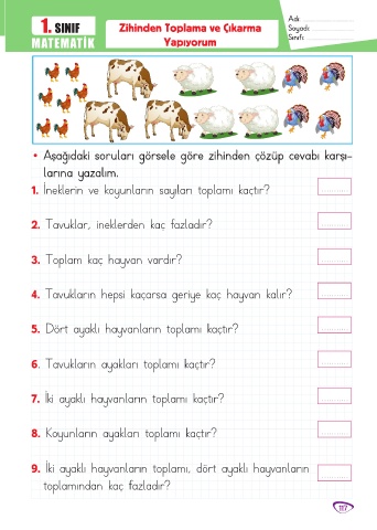 1. SINIF Zihinden Toplama ve Çıkarma Soyadı: ...................................