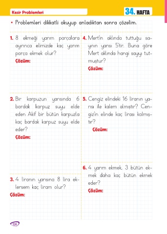 2. Bir karpuzun yarısında 6 5. Cengiz elindeki 16 liranın ya-