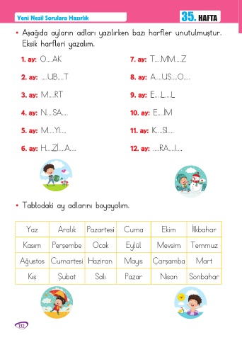 • Aşağıda ayların adları yazılırken bazı harfler unutulmuştur.