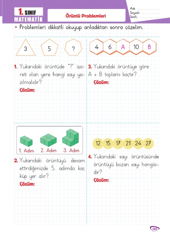 MATEMATİK Örüntü Problemleri Sınıfı: ........................................