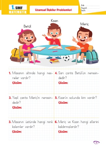 MATEMATİK Uzamsal İlişkiler Problemleri Sınıfı: ........................................