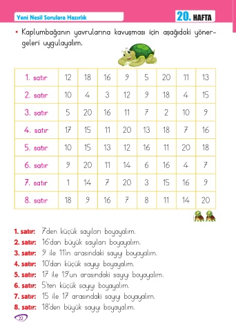5. satır: 17 ile 19’un arasındaki sayıyı boyayalım.
