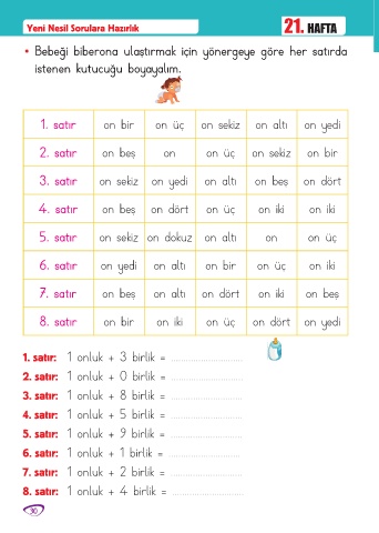 • Bebeği biberona ulaştırmak için yönergeye göre her satırda