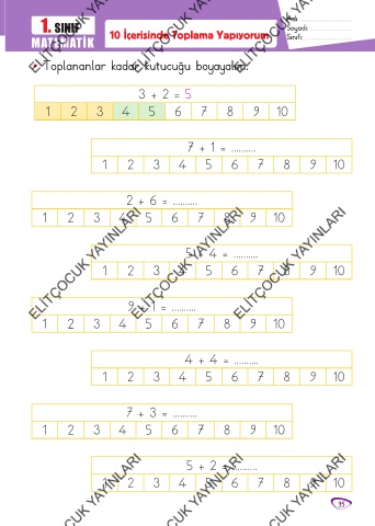MATEMATİK 10 İçerisinde Toplama Yapıyorum Sınıfı: ........................................