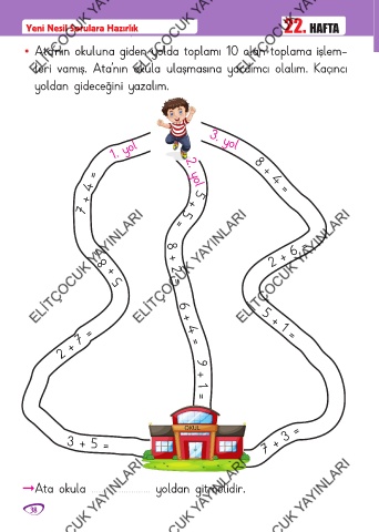 • Ata’nın okuluna giden yolda toplamı 10 olan toplama işlem-