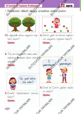 1.İki ağaçtaki elma sayısının top- 4. Esin’in yeşil ve kırmızı topları-