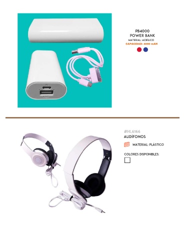 PB4000 POWER BANK MATERIAL: ACRíLICO CAPACIDAD: 4000 mAH #HL6166 audífonos Material: plástico colores disponibles: