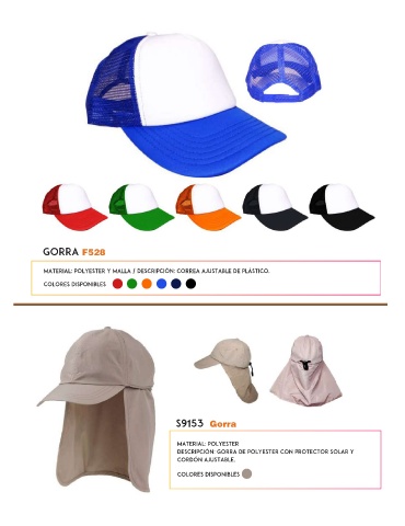 Descripción: Gorra de Polyester con protector solar y