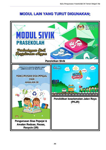 Buku Pengurusan Prasekolah SK Taman Megah Ria Pendidikan Sivik Pendidikan keselamatan Jalan Raya (PKJR) Pengurusan Sisa Pepejal & Amalan Reduse, Reuse, Recycle (3R) 33