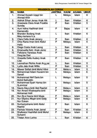 14. Mawar Sofiah binti Mohd Hilmi P Melayu Islam 5