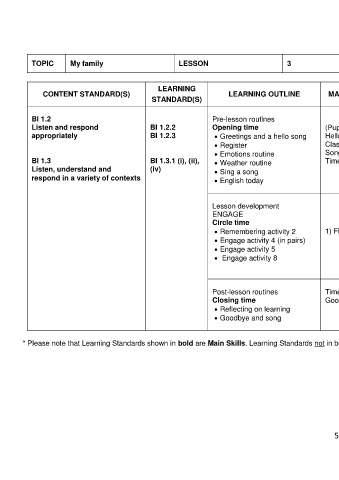 * Please note that Learning Standards shown in bold are Main Skills. Learning Standards not in bold are Complementary Skills