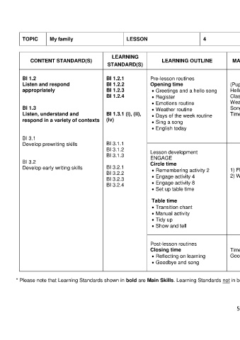 * Please note that Learning Standards shown in bold are Main Skills. Learning Standards not in bold are Complementary Skills