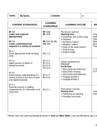 * Please note that Learning Standards shown in bold are Main Skills. Learning Standards not in bold are Complementary Skills