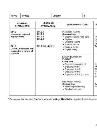 * Please note that Learning Standards shown in bold are Main Skills. Learning Standards not in bold are Complementary Skills