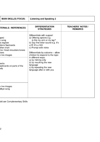 * Please note that Learning Standards shown in bold are Main Skills. Learning Standards not in bold are Complementary Skills