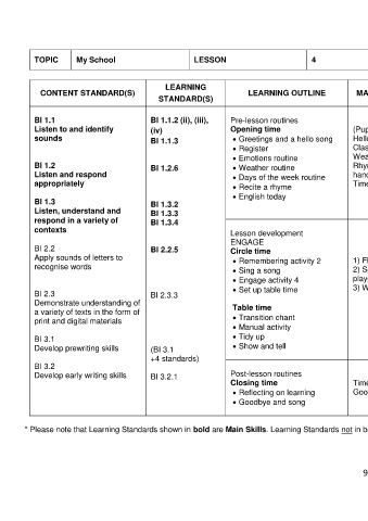 * Please note that Learning Standards shown in bold are Main Skills. Learning Standards not in bold are Complementary Skills