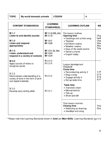 * Please note that Learning Standards shown in bold are Main Skills. Learning Standards not in bold are Complementary Skills