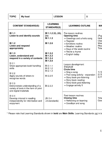 * Please note that Learning Standards shown in bold are Main Skills. Learning Standards not in bold are Complementary Skills