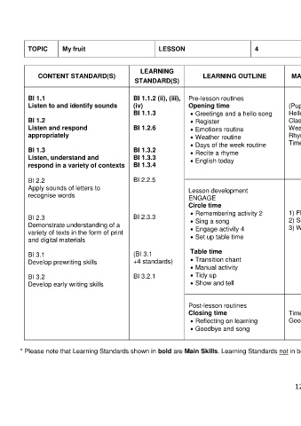 * Please note that Learning Standards shown in bold are Main Skills. Learning Standards not in bold are Complementary Skills