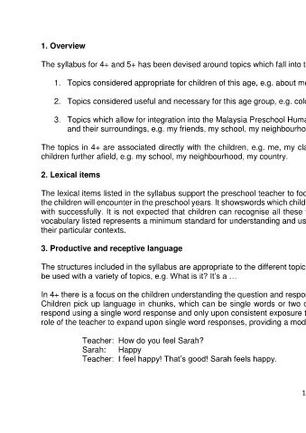 1. Topics considered appropriate for children of this age, e.g. about me, my family, my face, my body, my toys.