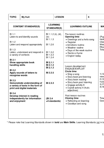 * Please note that Learning Standards shown in bold are Main Skills. Learning Standards not in bold are Complementary Skills
