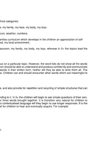 1. Topics considered appropriate for children of this age, e.g. about me, my family, my face, my body, my toys.