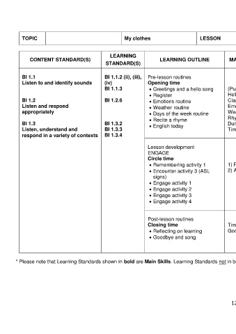 * Please note that Learning Standards shown in bold are Main Skills. Learning Standards not in bold are Complementary Skills