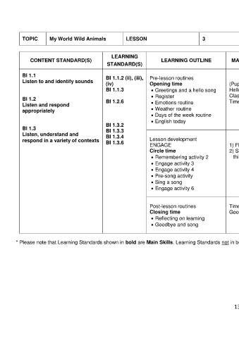 * Please note that Learning Standards shown in bold are Main Skills. Learning Standards not in bold are Complementary Skills