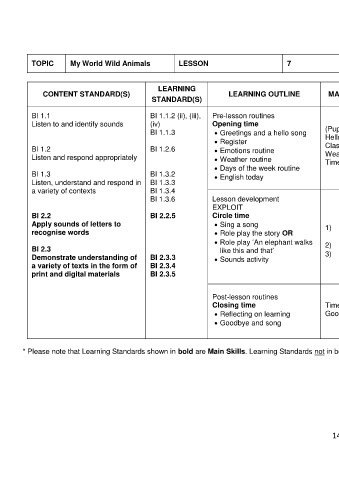 * Please note that Learning Standards shown in bold are Main Skills. Learning Standards not in bold are Complementary Skills