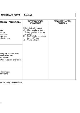 * Please note that Learning Standards shown in bold are Main Skills. Learning Standards not in bold are Complementary Skills