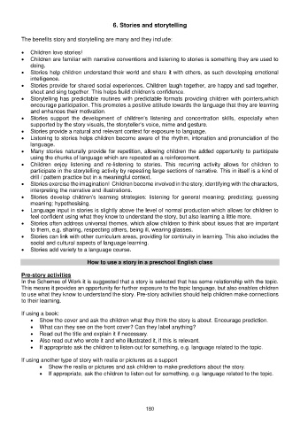 Stories develop children’s learning strategies: listening for general meaning; predicting; guessing