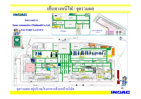 36 จุดรวมพล อยู่บริเวณโรงอาหารด้านหน้าบริษัท เส้นทางหนีไฟ / จุดรวมผล
