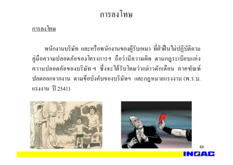 การลงโทษ พนักงานบริษัท และหรือพนักงานของผู้รับเหมา ทีjฝาฝนไม่ปฏิบัติตาม คู่มือความปลอดภัยของโครงการฯ ถือว่ามีความผิด ตามกฎระเบียบแห่ง ความปลอดภัยของบริษัท ฯ ซึjงจะได้รับโทษว่ากล่าวตักเตือน ภาคฑัณท์ ปลดออกจากงาน ตามข้อบังคับของบริษัทฯ และกฎหมายแรงงาน (พ.ร.บ.
