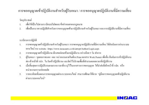 เพืDอเป็นแนวทางปฏิบัติสําหรับการขออนุญาตเข้ามาปฏิบัติงานสําหรับผู้รับเหมา และการปฏิบัติงานทีDมีความเสีDยง