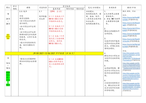 周次 课题 内容标准 笔记/活动建议 表现标准 教材/评估