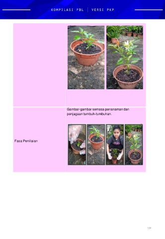 Gambar-gambar semasa penanaman dan penjagaan tumbuh-tumbuhan. Fasa Penilaian 104