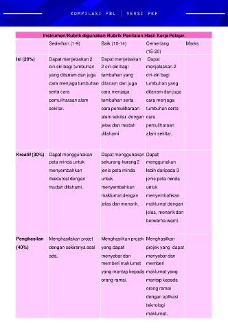Instrumen/Rubrik digunakan Rubrik Penilaian Hasil Kerja Pelajar.