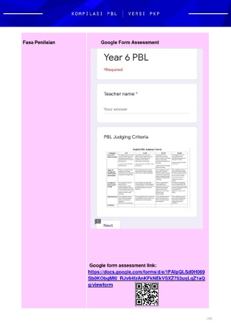Fasa Penilaian Google Form Assessment Google form assessment link: https://docs.google.com/forms/d/e/1FAIpQLSd0H069 Sb0KObgMl0_RJv64fzAnKFkNEkVSXZ753uqLqZ1aQ g/viewform 145