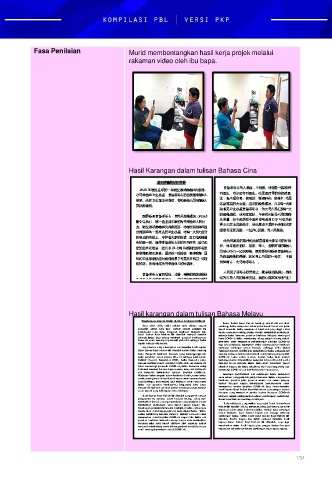 Fasa Penilaian Murid membentangkan hasil kerja projek melalui rakaman video oleh ibu bapa. Hasil Karangan dalam tulisan Bahasa Cina Hasil karangan dalam tulisan Bahasa Melayu 154