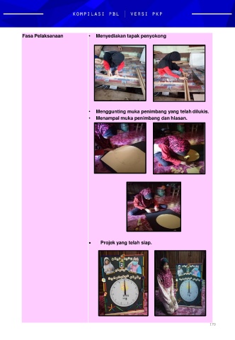 Fasa Pelaksanaan • Menyediakan tapak penyokong • Menggunting muka penimbang yang telah dilukis. • Menampal muka penimbang dan hiasan. Projek yang telah siap. 170