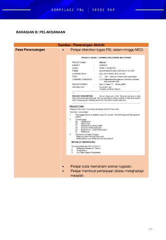 BAHAGIAN B: PELAKSANAAN Gambar / Penerangan Aktiviti Fasa Perancangan Pelajar diberikan tugas PBL dalam minggu MCO. Pelajar cuba memahami arahan tugasan. Pelajar membuat pertanyaan jikalau menghadapi masalah. 190
